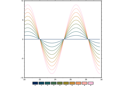 x/y,fillcan be a 1-D array that will be mapped to a colormap.If a symbol is selected and no symbol size given, then plot will interpret the third column of the input data as symbol size. Symbols whose size is <= 0 are skipped. If no symbols are specified then the symbol code (see